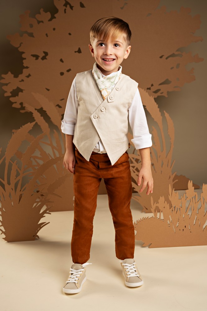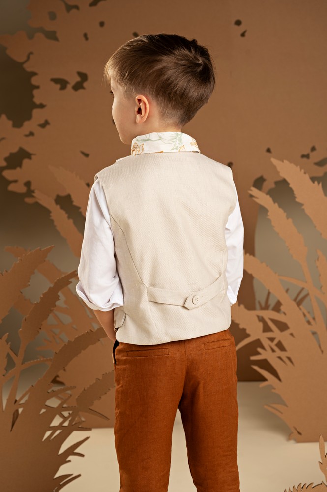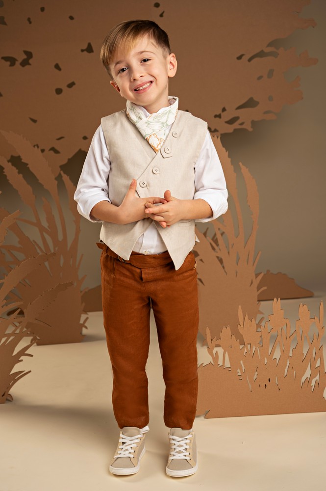 Μια πρόταση που ξεχωρίζει για τον όμορφο χρωματικό συνδυασμό και τις ιδιαίτερες λεπτομέρειες στον σχεδιασμό. Το παντελόνι από λινό ύφασμα σε απόχρωση σαφράν, δένει υπέροχα με το γιλέκο από μπεζ Tencel-cotton-linen ύφασμα με το λοξό κούμπωμα και τις ξεχωριστές λεπτομέρειες . Το λευκό βαμβακερό πουκάμισο με Mao γιακά και το φλοράλ φουλάρι σε αποχρώσεις μέντας και σαφράν με exclusive τύπωμα Baby Bloom ολοκληρώνει το look με στιλ. Για την τελευταία πινελιά, επιλέξτε ανάμεσα σε ψάθινο καπέλο ή υφασμάτινη τραγιάσκα, σύμφωνα με το προσωπικό σας στυλ.
