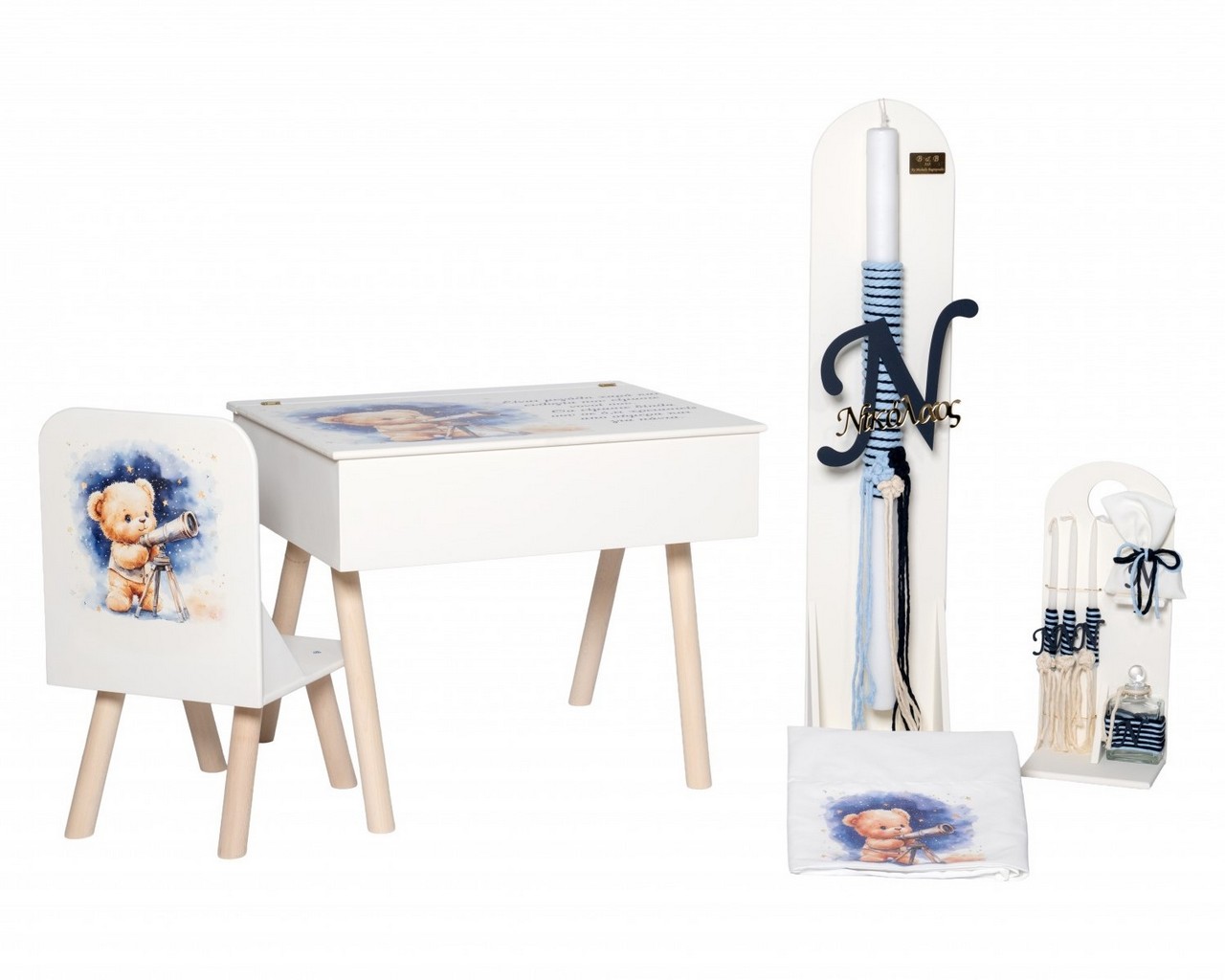 - Βαπτιστικό ξύλινο γραφείο με ψηφιακή εκτύπωση το θέμα και αφιέρωση από τους Νονούς προς το παιδί.