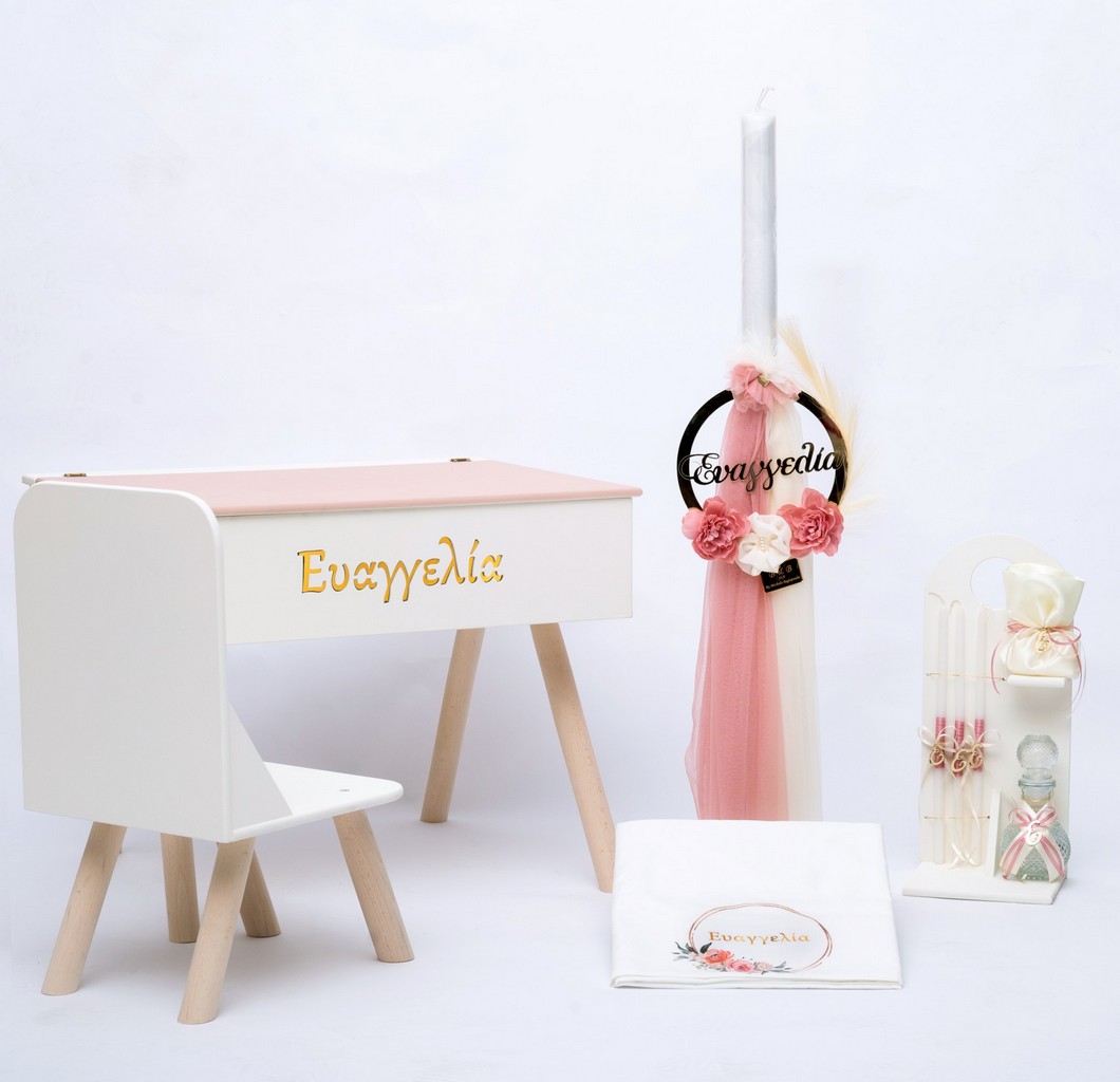 - Βαπτιστικό ξύλινο γραφείο με φωτιζόμενο όνομα σε χάραξη.