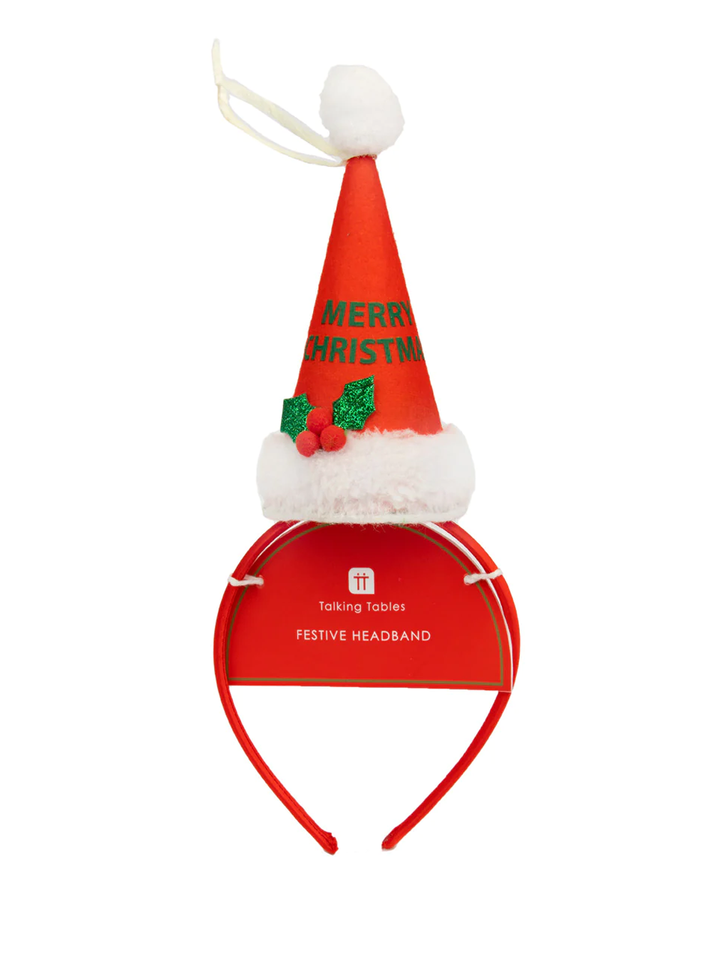 Χριστουγεννιάτικη κόκκινη στέκα για τα μαλλιά με καπελάκι που αναγράφει Merry Christmas .