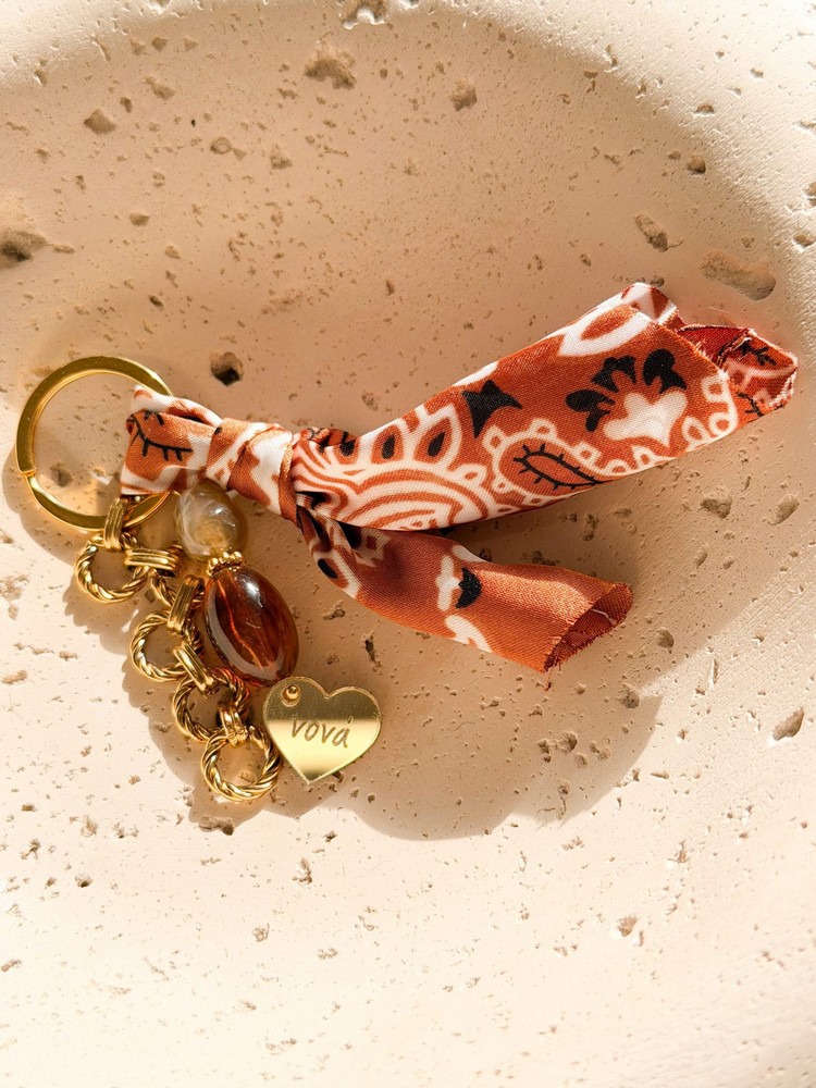 Μπρελοκ με μπαντάνα,αλυσίδα,καφέ χάντρα και πλεξιγκλας μοτιφ καρδιά μαμά,νονά,γιαγιά και θεία.