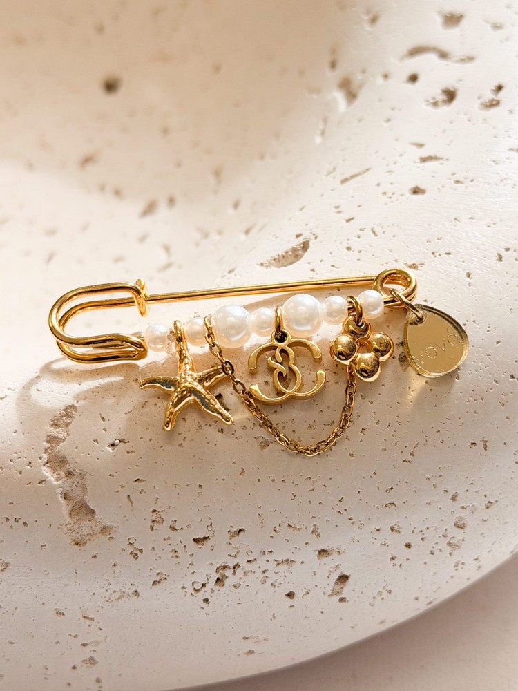 Παραμάνα με πέρλες,μοτιφ αστερία και σταυρό επιχρυσωμένο,πλεξιγκλας μαμά νονά.