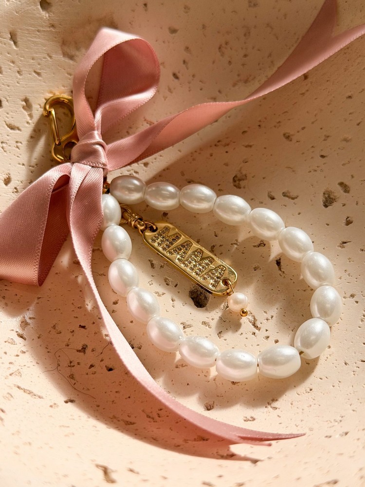 Μπρελοκ για την μαμά με σάπιο μήλο κορδέλα κι πέρλες.