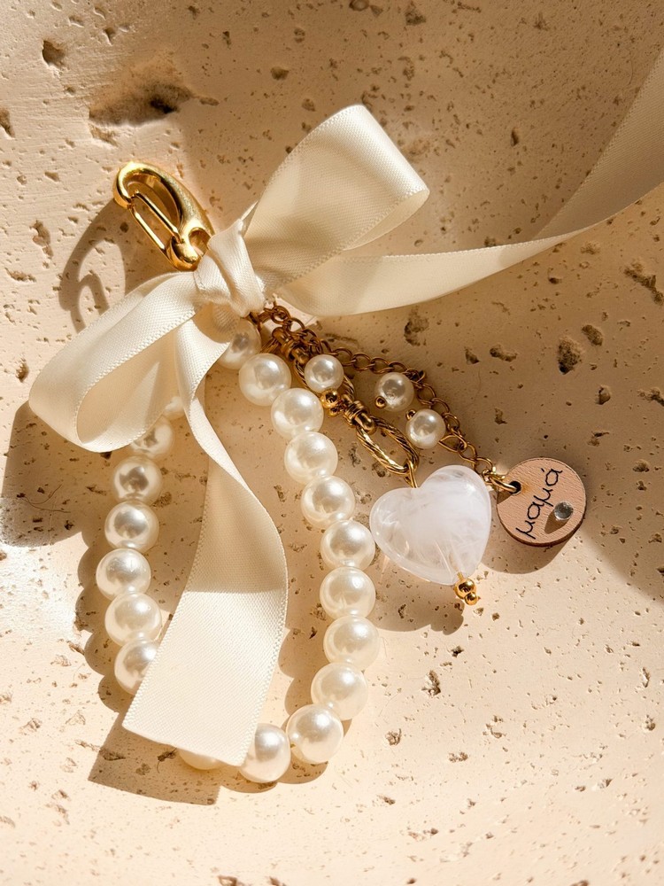 Μπρελοκ με κορδέλα,πέρλες και καρδιά για την μαμά,νονά,αδερφή,θεία,κουμπάρα,γιαγιά.Το γιαγιά βγαίνει σε ξύλινο χρυσό αστεράκι ενω το κουμπάρα,θεία,αδερφή βγαίνει σε ροζ καρδιά.