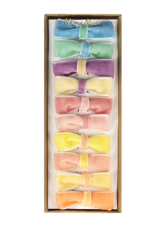 Mini κλιπ μαλλιών βελούδινοι φιόγκοι σε 10 διαφορετικές αποχρώσεις για ξεχωριστές εμφανίσεις.