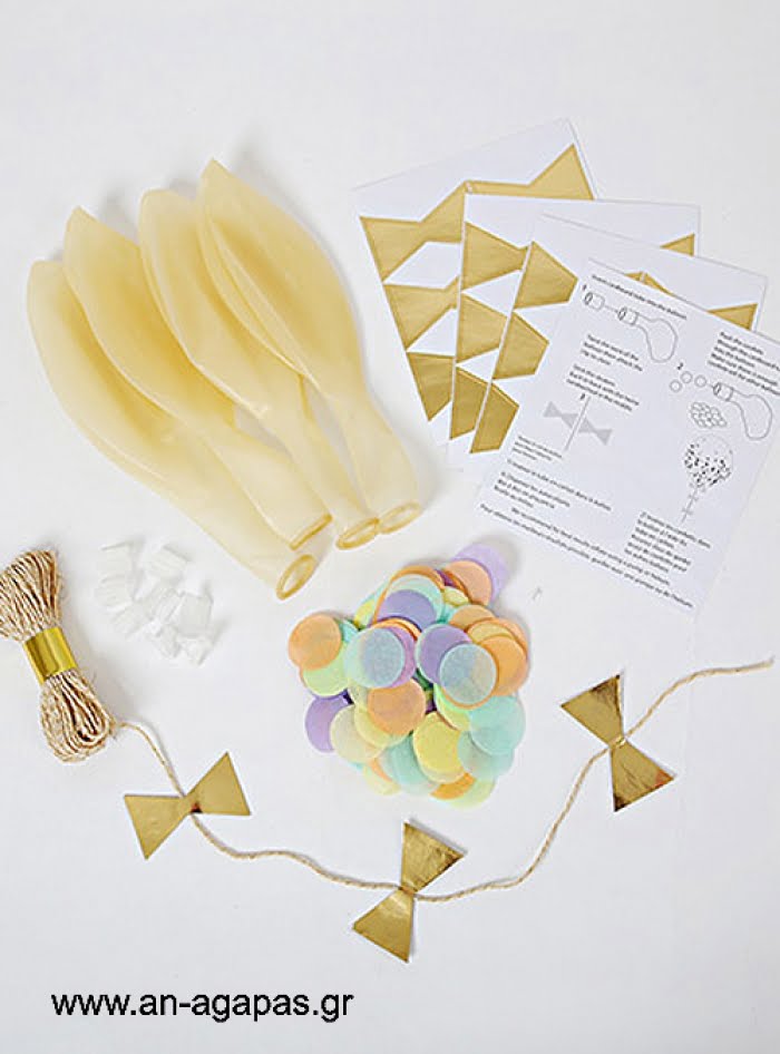Γεμίστε τα με τα πολύχρωμα παστέλ κομφετί και στολίστε τα με χρυσούς φιόγκους.