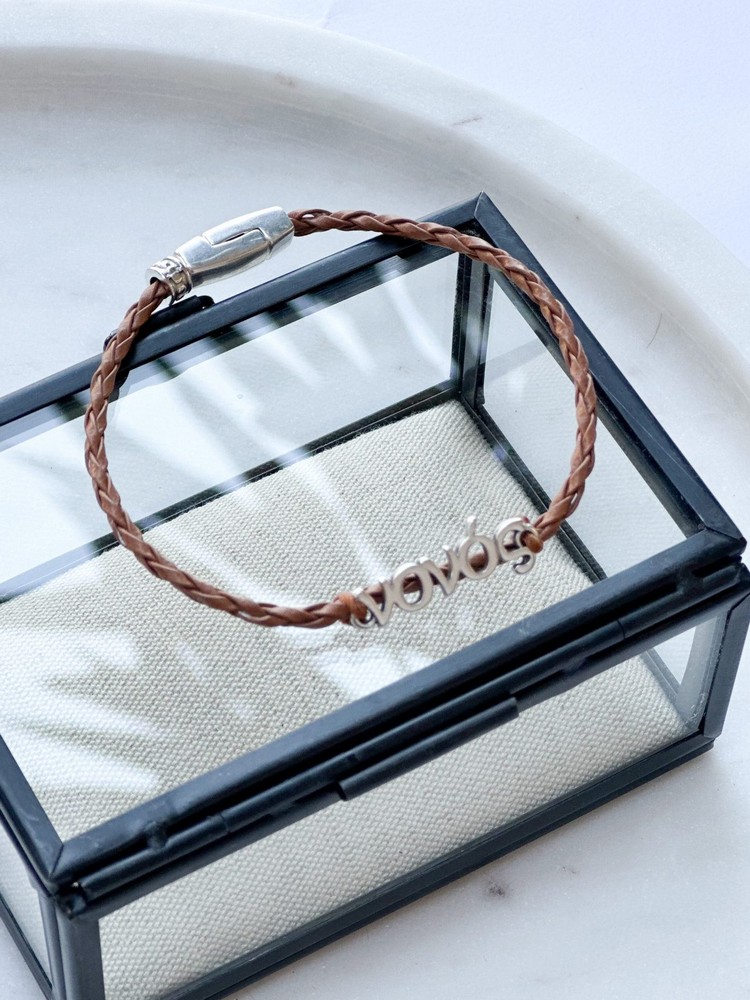 Βραχιολάκι με καφέ κορδόνι πλεξούδα για τον μπαμπά και τον νονό.