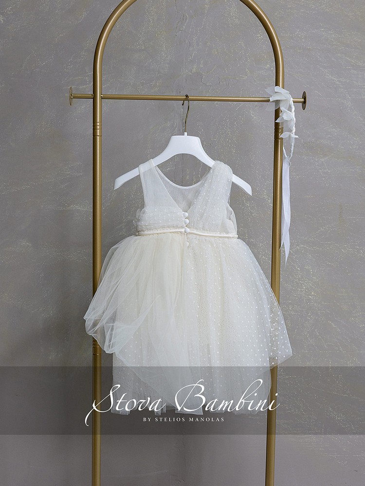 Αέρινο και ρομαντικό φόρεμα σε απαλή ivory απόχρωση, σχεδιασμένο για να ξεχωρίζει με τη διακριτική του κομψότητα. Το ασύμμετρο μπούστο από φίνο Tulle Flock και glitter δημιουργεί ένα ιδιαίτερο draped αποτέλεσμα, χαρίζοντας μοναδική υφή και κίνηση στο σύνολο. Η φούστα από ανάλαφρο Tulle Flock και glitter αγκαλιάζει αρμονικά τη σιλουέτα, ενώ οι διαφορετικές στρώσεις σε ivory τόνους προσθέτουν βάθος και ονειρική αίσθηση. Η λεπτή ζώνη στη μέση (Γαλλίας) ολοκληρώνεται με εντυπωσιακή χειροποίητη σύνθεση από υφασμάτινα λουλούδια και διακριτικές λεπτομέρειες, προσδίδοντας έναν ιδιαίτερα φίνο χαρακτήρα. Όλα τα φορέματα διαθέτουν εσωτερική επένδυση 100% Cotton για απόλυτη άνεση.