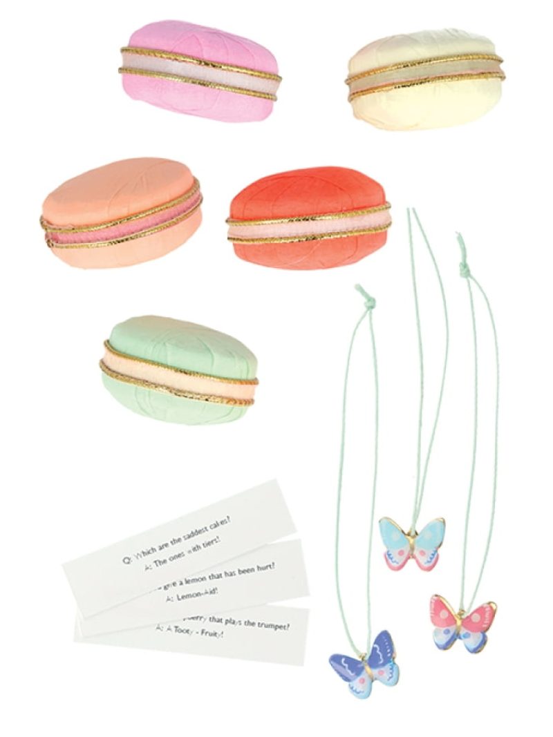 Κάθε macaron περιλαμβάνει 1 γούρι, 2 αυτοκόλλητα, 1 χάρτινο καπελάκι, 1 βραχιόλι και 1 αστείο.