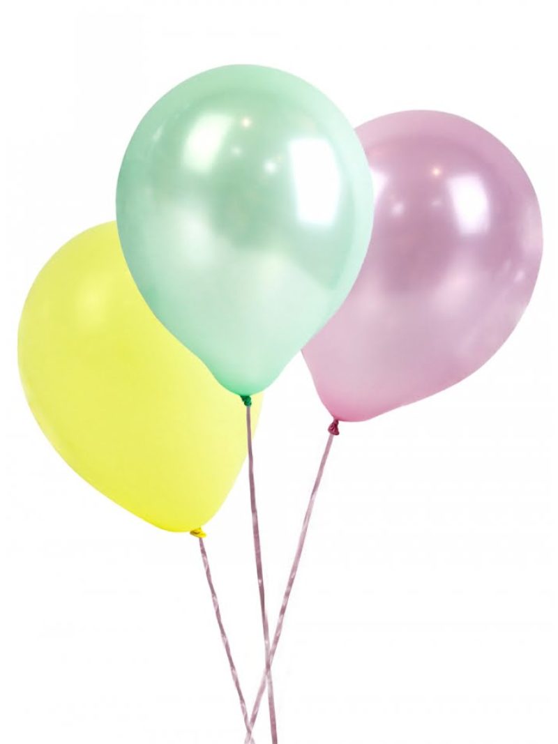 60 μπαλόνια (10 κίτρινα, 10 μπλε, 10 πορτοκαλί, 10 ροζ, 10 μωβ και 10 πράσινα)