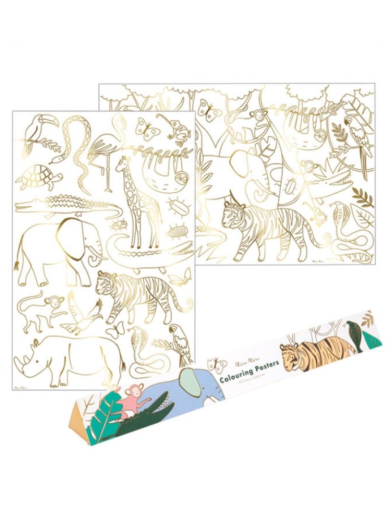 Χάρτινα posters ζωγραφικής με θέμα τη ζούγκλα και χρυσές foil λεπτομέρειες.