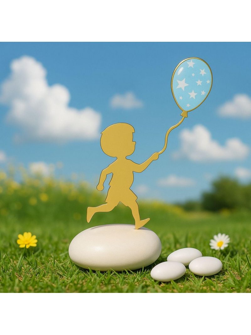 Μπομπονιέρα Βάπτισης Αγόρι με Μπαλόνι σε Βότσαλο 9156 (Υ 14cm x Π 6cm)