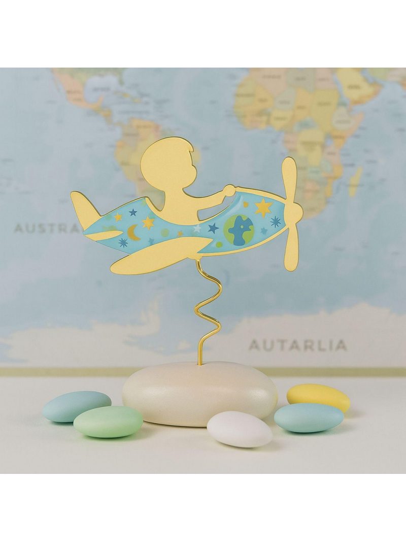 Μπομπονιέρα Βάπτισης Αγόρι σε Αεροπλάνο σε Βότσαλο 2205 ( Υ 12cm x Π 9cm)