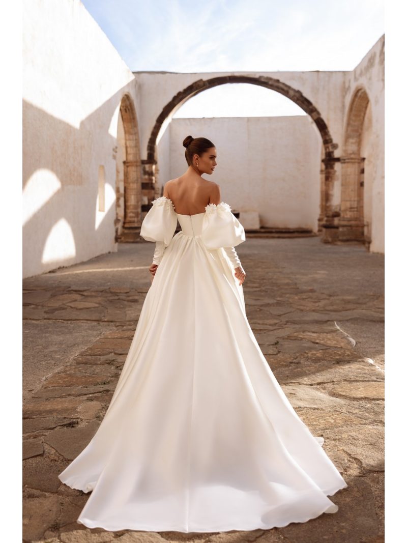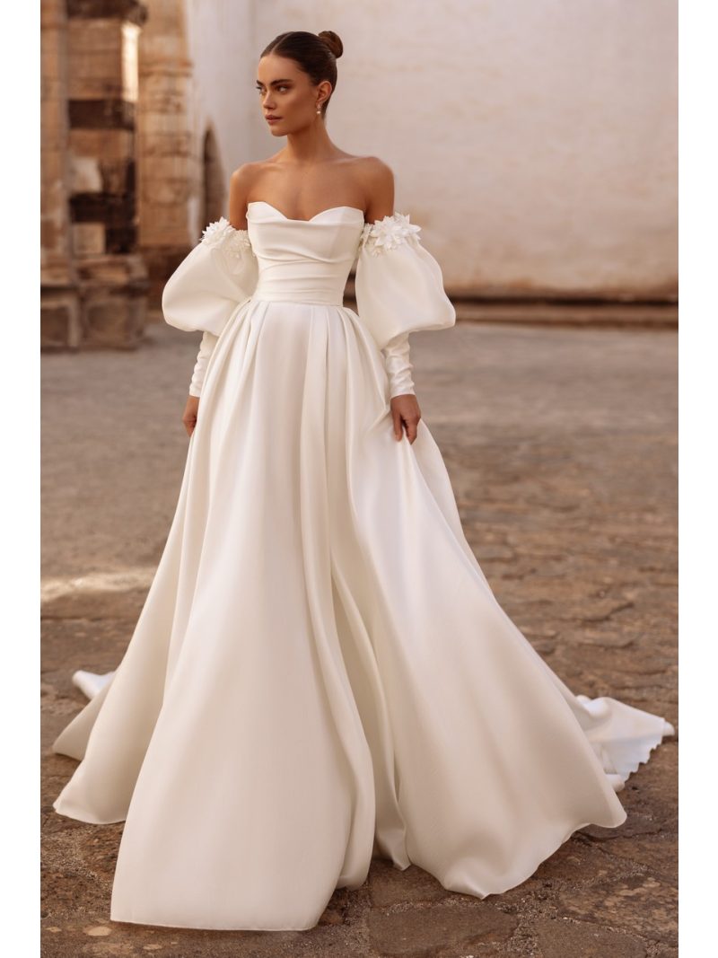Το Anika είναι ένα φόρεμα για νύφες που θέλουν να κάνουν μια δήλωση με διαχρονική κομψότητα και μοντέρνα πινελιά. Το δομημένο μπούστο με το ντεκολτέ σε σχήμα καρδιάς δημιουργεί μια θηλυκή σιλουέτα, ενώ τα ογκώδη αποσπώμενα μανίκια προσθέτουν δραματικότητα και μια μοντέρνα πινελιά. Κατασκευασμένη από πολυτελές σατέν, η πλήρης φούστα ρέει με χάρη και δίνει στο φόρεμα μια βασιλική παρουσία. Κάθε λεπτομέρεια έχει σχεδιαστεί για να εξισορροπεί την κομψότητα με την ατομικότητα, καθιστώντας την Anika εντυπωσιακή και ευέλικτη. Αυτό το φόρεμα είναι ιδανικό για νύφες που θέλουν να αισθάνονται δυνατές και χαριτωμένες ταυτόχρονα - μια εμφάνιση εκλεπτυσμένη, γεμάτη αυτοπεποίθηση και αξέχαστη.