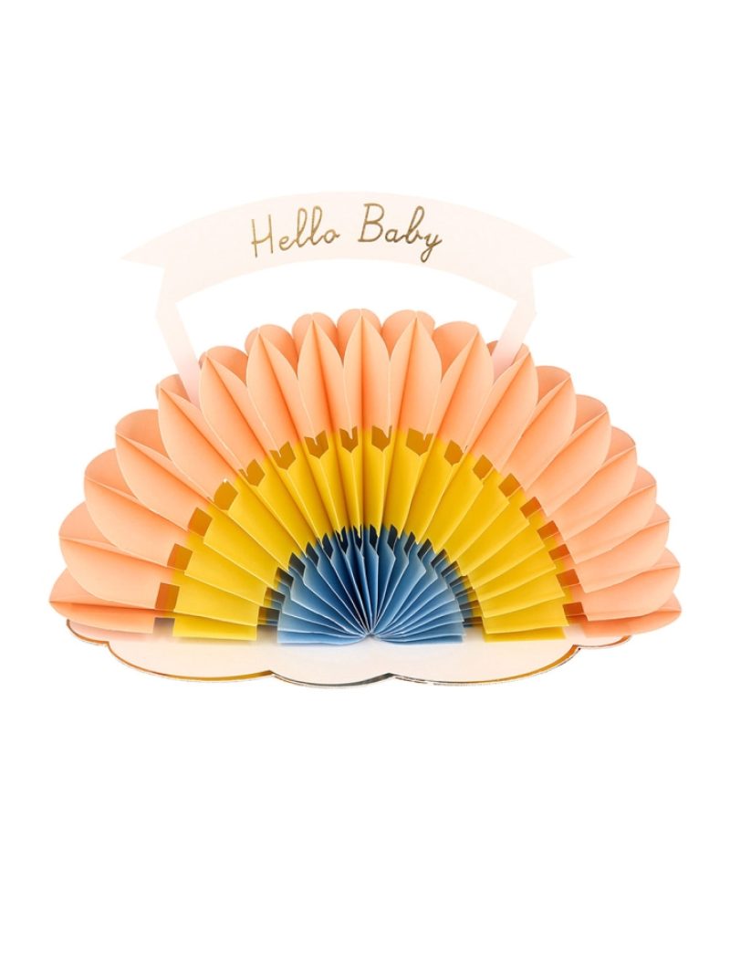 Χάρτινη ευχετήρια κάρτα με honeycomb ουράνιο τόξο και το μήνυμα ‘’Hello Baby’’.