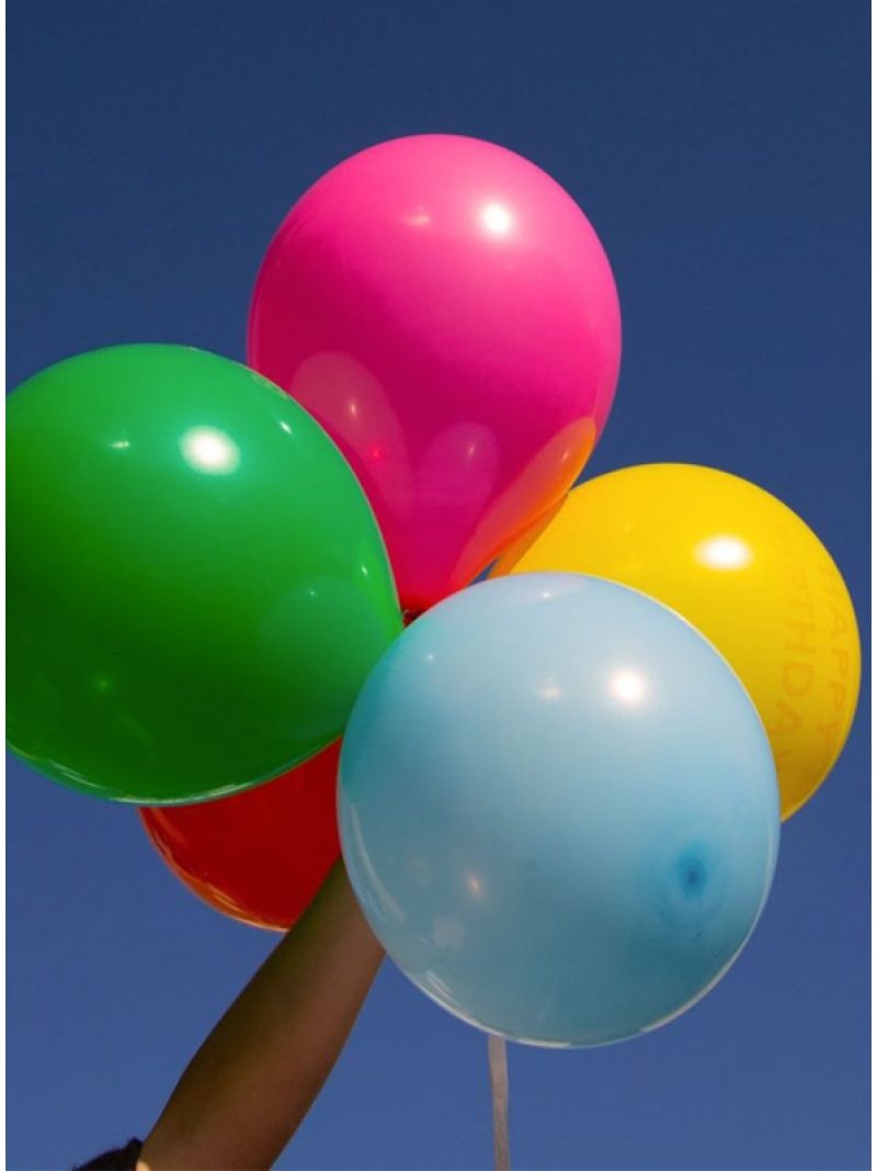 60 μπαλόνια (10 κίτρινα, 10 μπλε, 10 πορτοκαλί, 10 ροζ, 10 μωβ και 10 πράσινα)