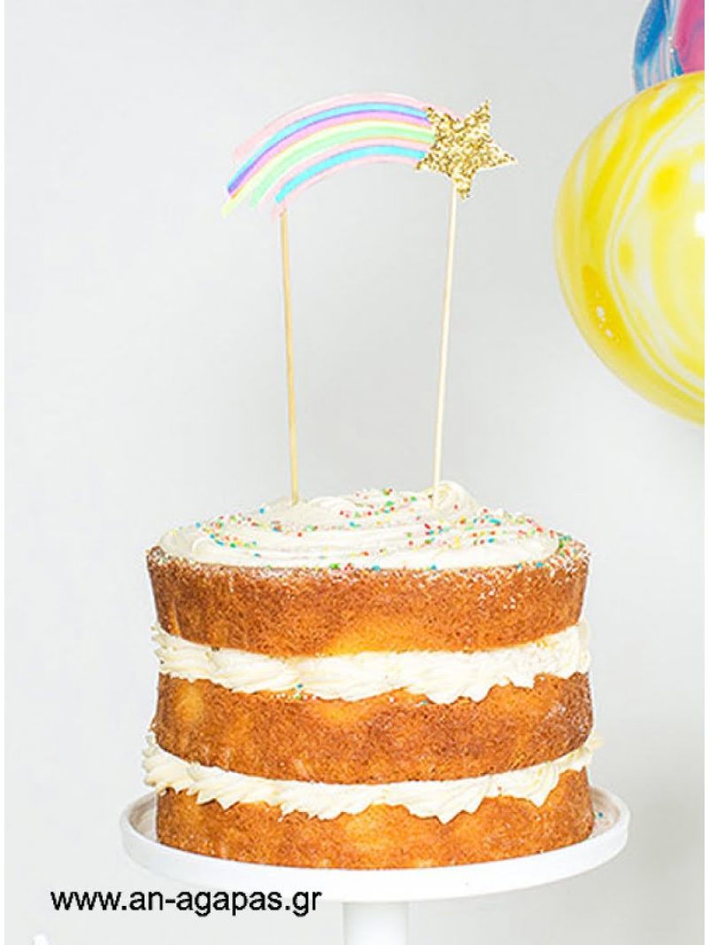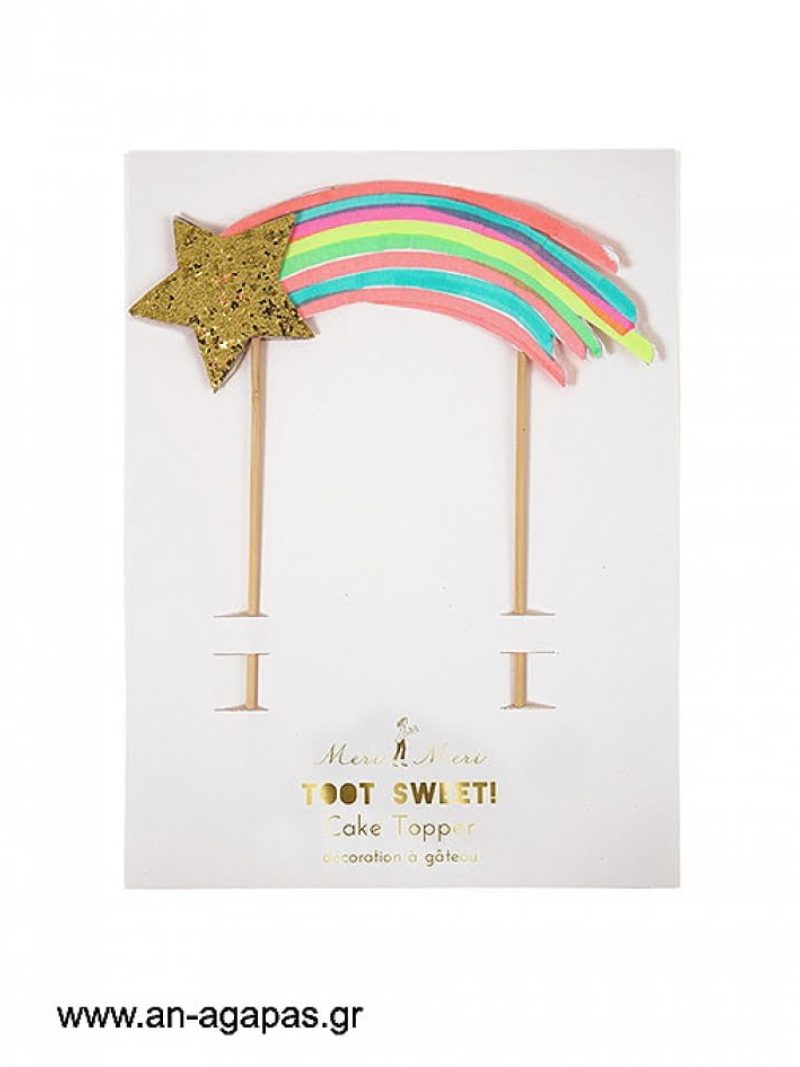 To topper διακοσμείται με πολύχρωμα κορδόνια σε νέον χρώματα.