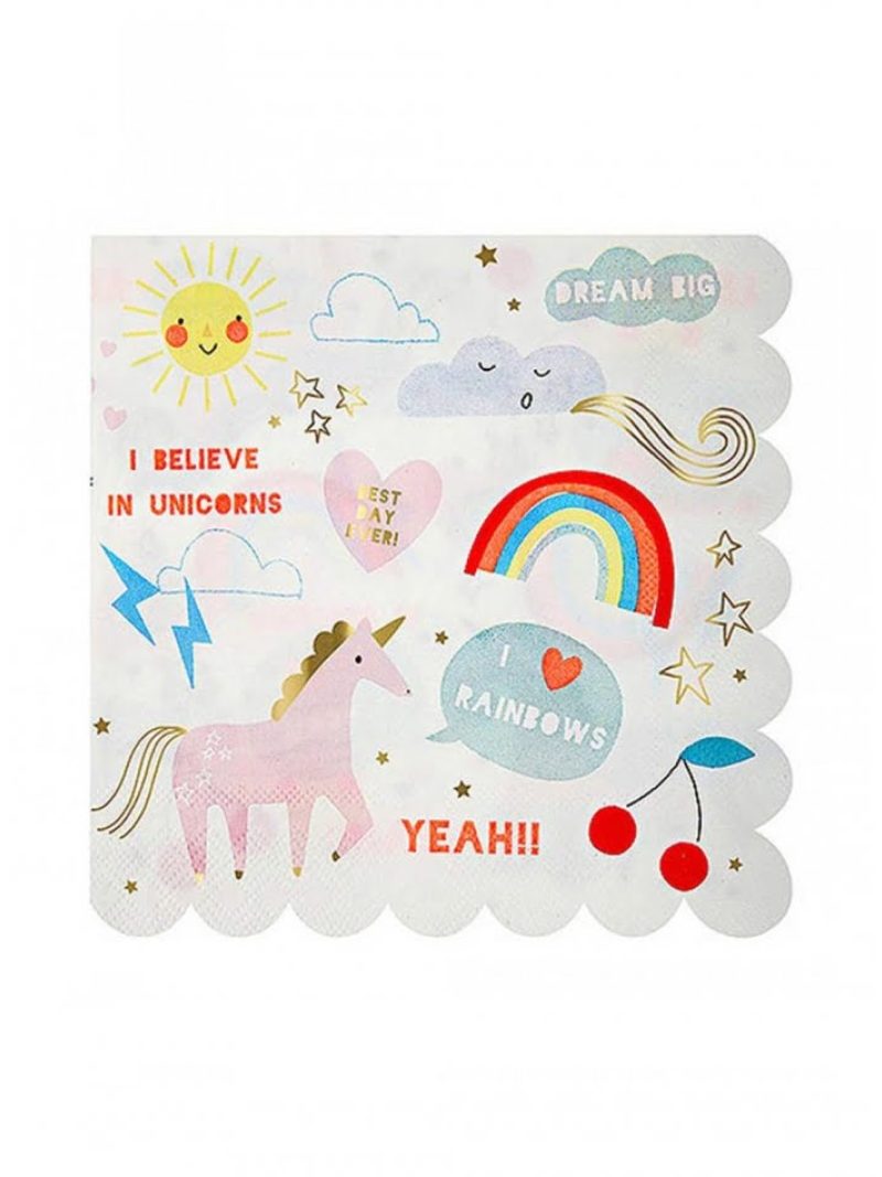 Χαρτοπετσέτα φαγητού με θέμα το ουράνιο τόξο και το μονόκερο.