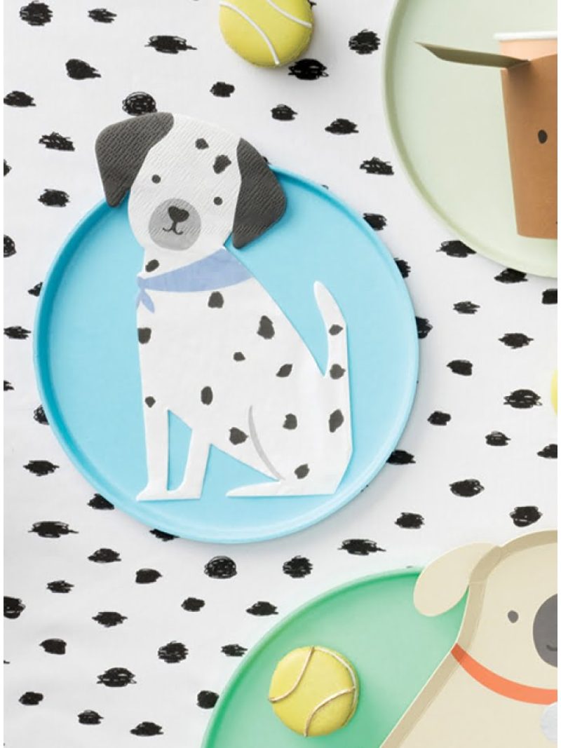 Χάρτινη γιρλάντα με σκύλους σε διάφορα σχέδια και σημαιάκια που αναγράφουν ‘’pawty time’’, περασμένα σε ασορτί κορδόνι.