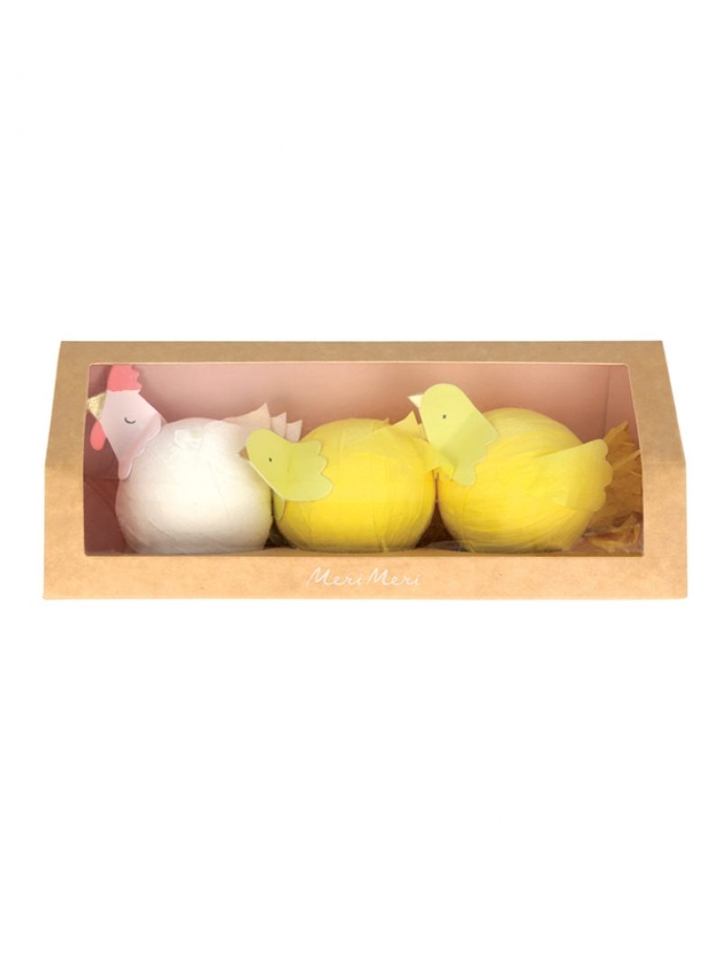 Χάρτινες μπαλίτσες έκπληξης σε 3 πασχαλινά σχέδια, κοτούλα με τα κοτοπουλάκια της.