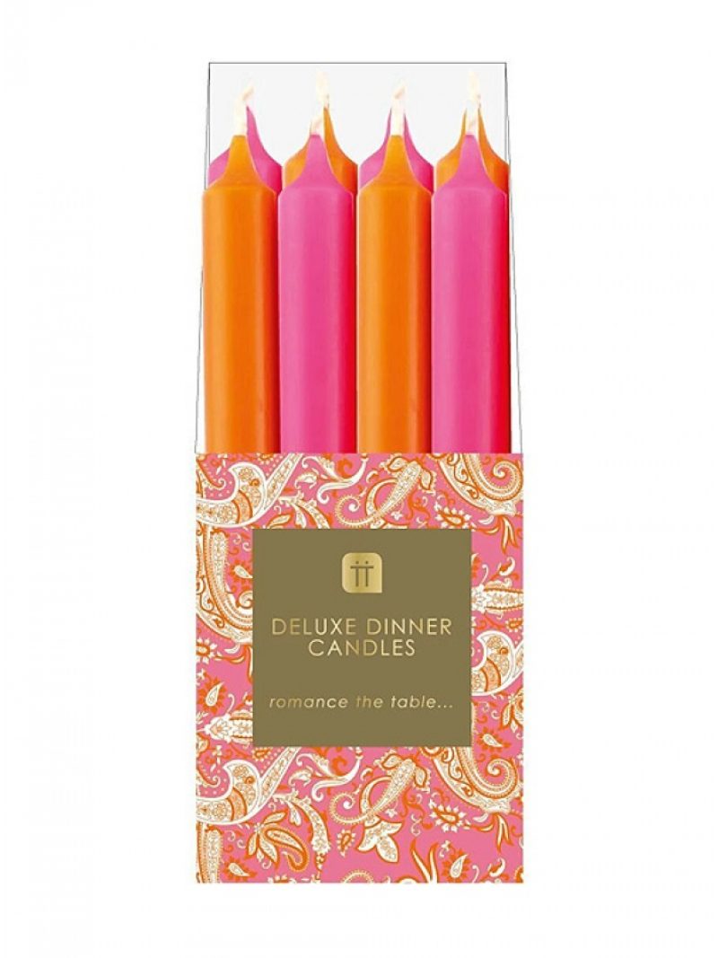 Κεριά δείπνου της σειράς Boho Spice σε πορτοκαλί και ροζ απόχρωση.