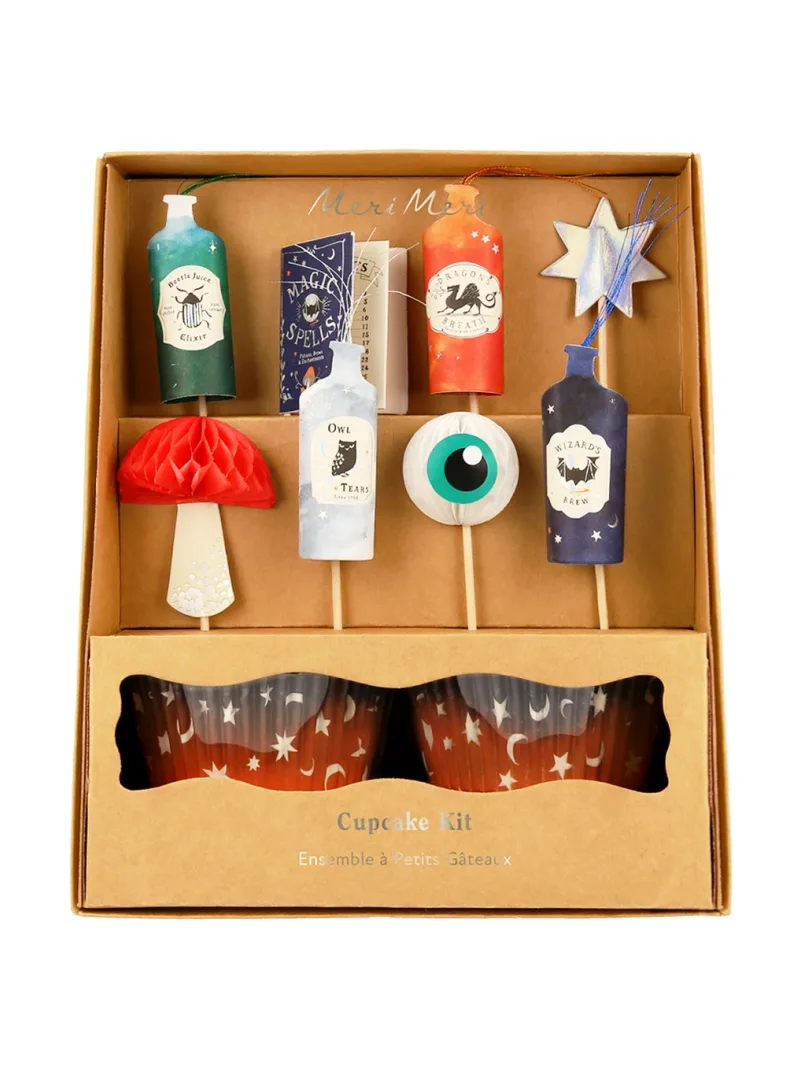 Αυτό το ειδικό set περιέχει toppers για κέικ ή για άλλες λιχουδιές με θέμα το μαγικό φίλτρο και θήκες ombre starry night cupcake, ιδανικές για πάρτι ή για το Halloween.