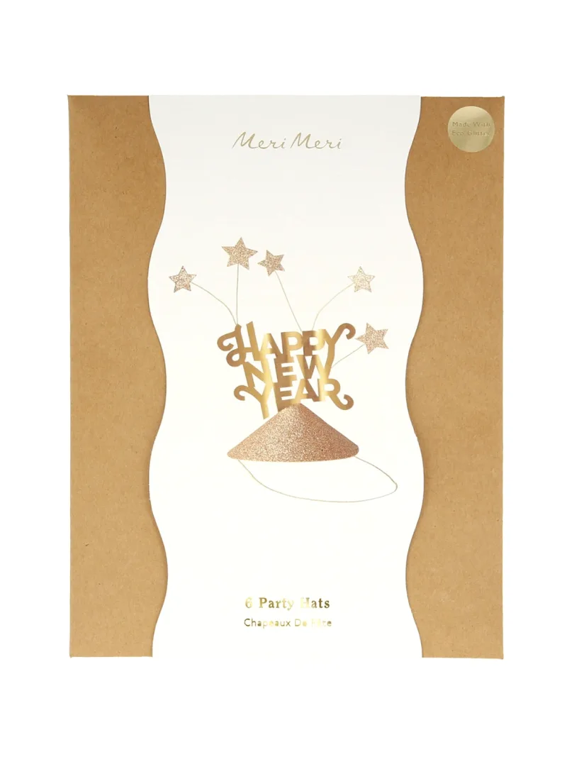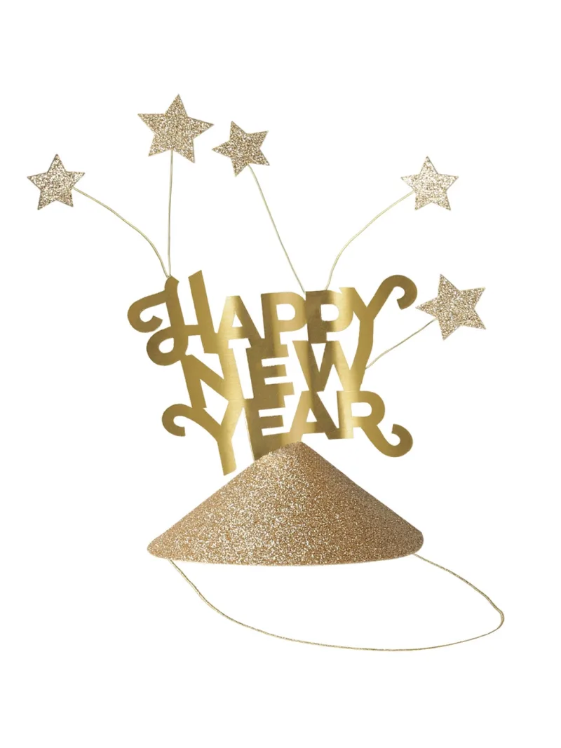 Χάρτινα χρυσά καπελάκια Happy New Year με αστεράκια.