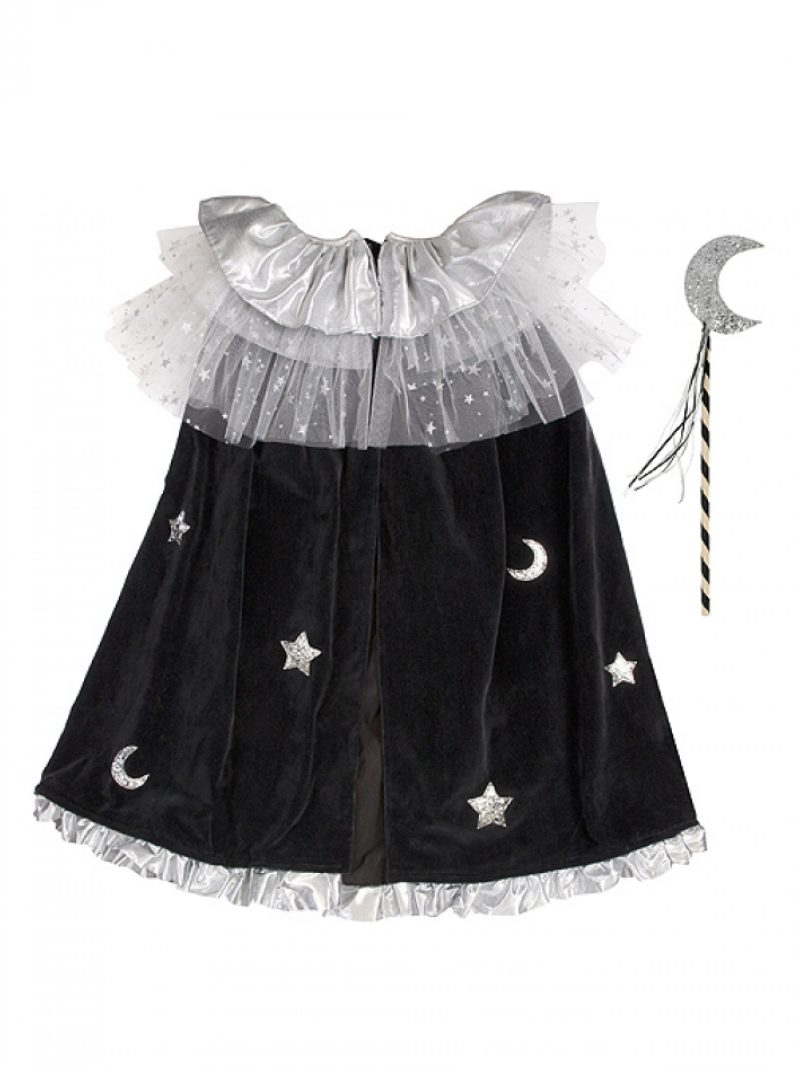 Η κάπα είναι κατασκευασμένη από μαύρο βελούδινο ύφασμα και στολίζεται με ασημένια αστέρια και φεγγαράκια. Διαθέτει γιακά από λευκό τούλι διακοσμημένο με ασημένια αστέρια.