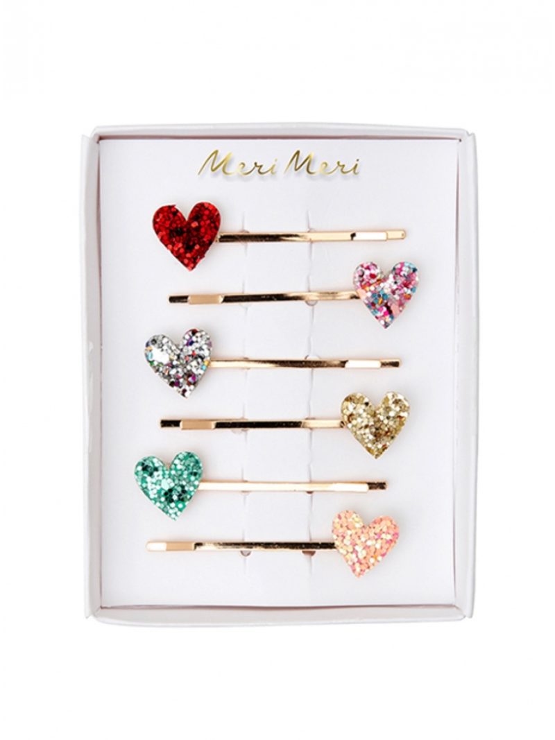 Hair Slides Glitter Heart (6τμχ)