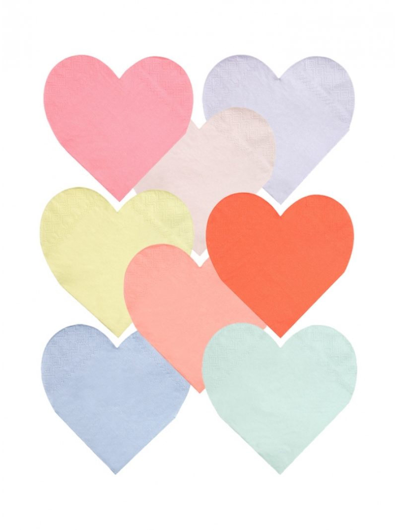 Χαρτοπετσέτα σε σχήμα καρδιάς και 8 pastel χρώματα.