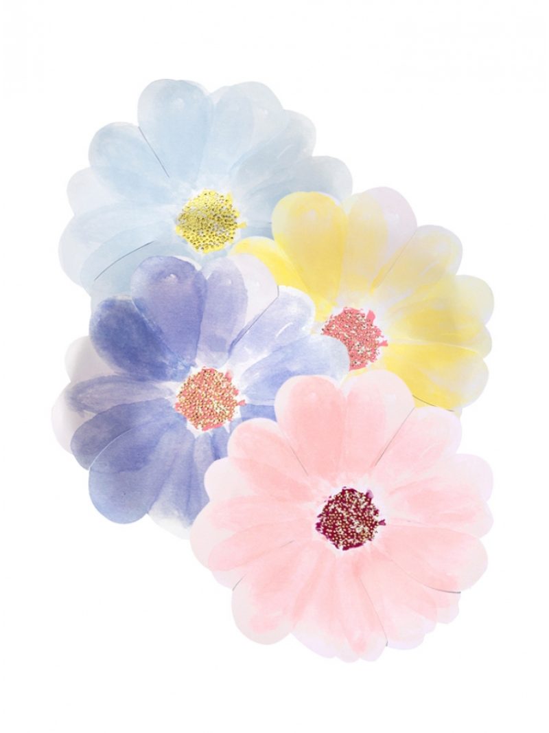 Χάρτινο πιάτο γλυκού σε σχήμα λουλουδιού και 4 χρώματα.
